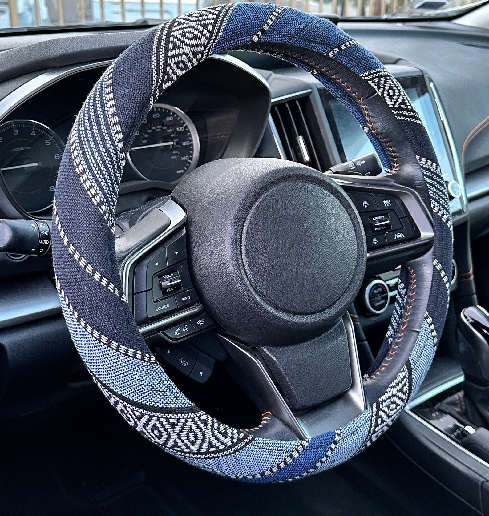 Steering wheel cover designed for a universal fit, suitable for wheels with a diameter of 14.5–15 inches.